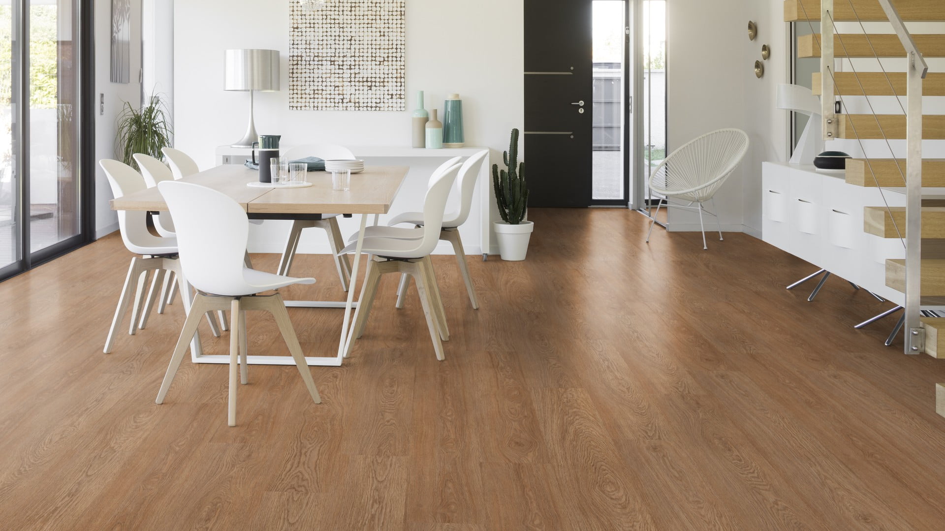 Deze vloer – Lounge Oak Chestnut – uit de luxe en stijlvolle Creation 55 collectie van Gerflor heeft een click systeem. Dit wil zeggen dat de planken eenvoudig in elkaar geklikt kunnen worden. De vloer kan regulier gelegd worden, maar ook in visgraat of Hongaarse punt. Vloerverwarming is uitermate geschikt voor deze vloeren aangezien warmte wordt vastgehouden door het isolerende materiaal. De woonkamer, slaapkamer, kantoor, kinderkamer, vliering of thuiskantoor. Eigenlijk is elke ruimte wel geschikt voor onze vloeren. Zelfs in vochtige ruimtes zoals de badkamer en keuken kan gelegd worden, het materiaal is vochtwerend.